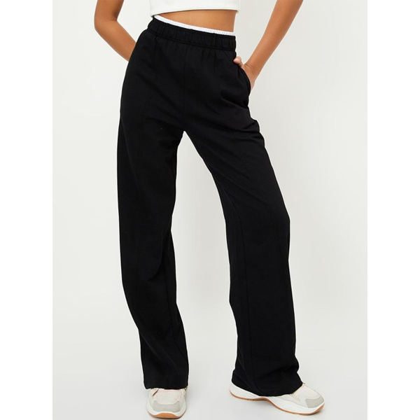 Women High Waist Cotton Side Slit Flared Track Pants